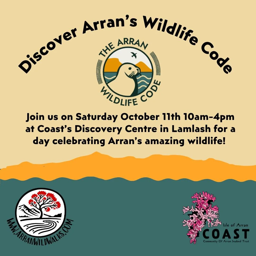 On the morning of Saturday 11th October myself and Megan Hamill from the Arran Wildlife Code will be leading a free guided coastal walk in Lamlash bay! We will share wildlife watching tips, chat about the code and hopefully spot some of Arran’s iconic coastal wildlife. The walk will take us through Lamlash Bay’s No Take Zone, which will be an exciting location to chat about the fantastic recovery that has been taking place beneath the waves since the NTZ was launched.